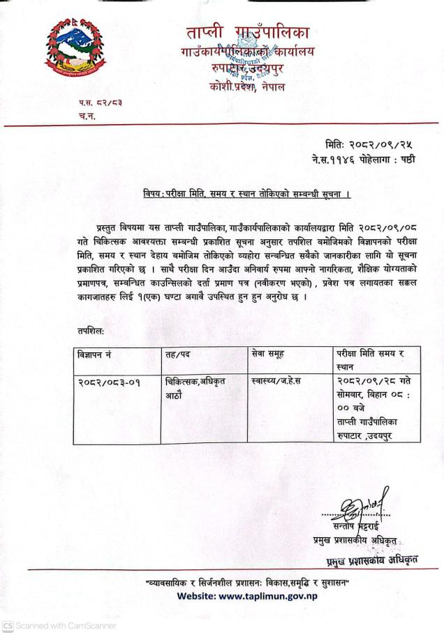परीक्षा मिति, समय र स्थान तोकिएको सम्बन्धी सूचना !!!