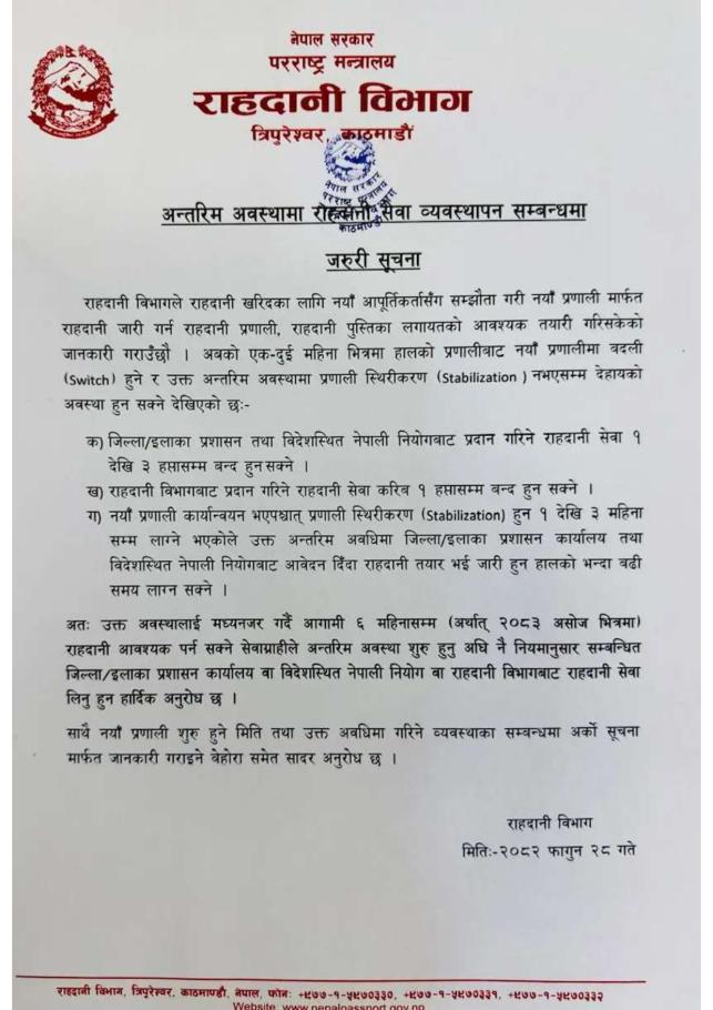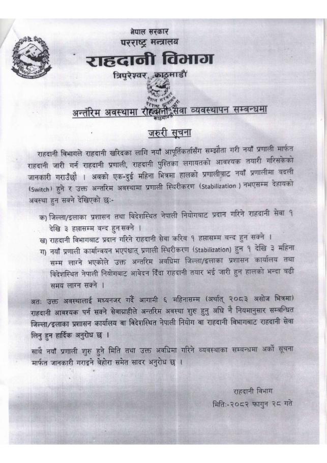 अन्तरिम अवस्थामा राहदानी सेवा व्यवस्थापन सम्बन्धमा ।