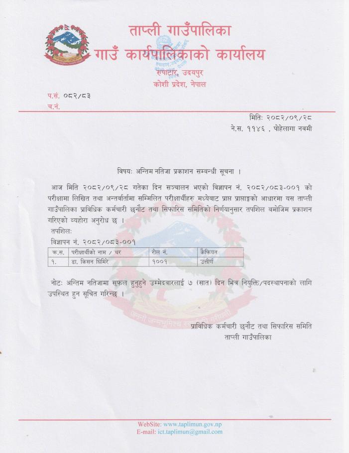 अन्तिम नजिता प्रकाशन सम्बन्धी सूचना !!!