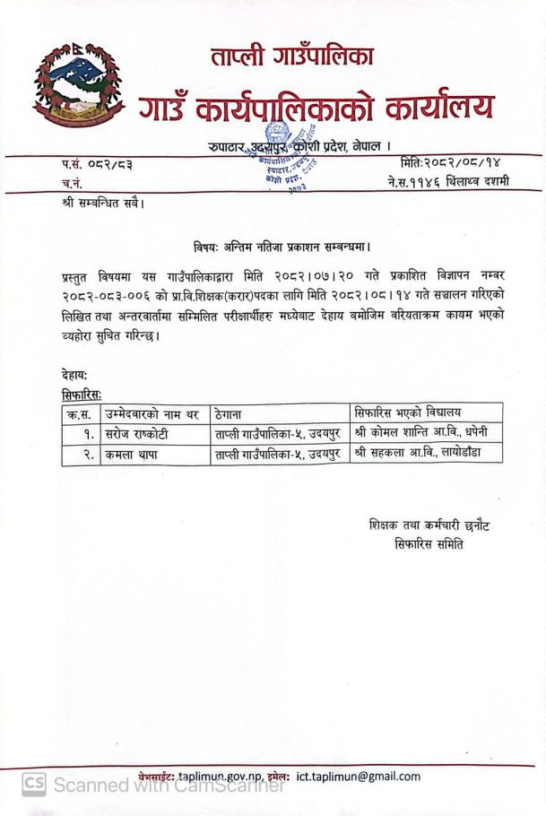 अन्तिम नतिजा प्रकाशन सम्बन्धमा ।