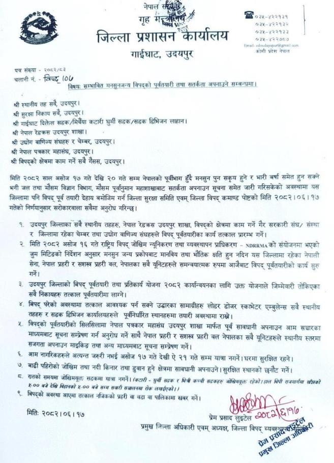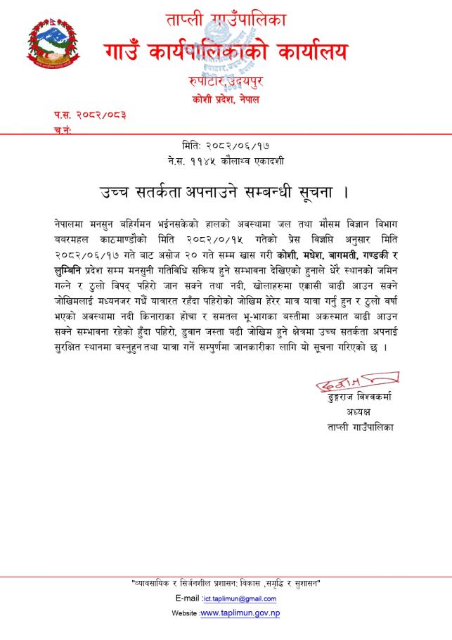 उच्च सतर्कता अपनाउने सम्बन्धी सूचना
